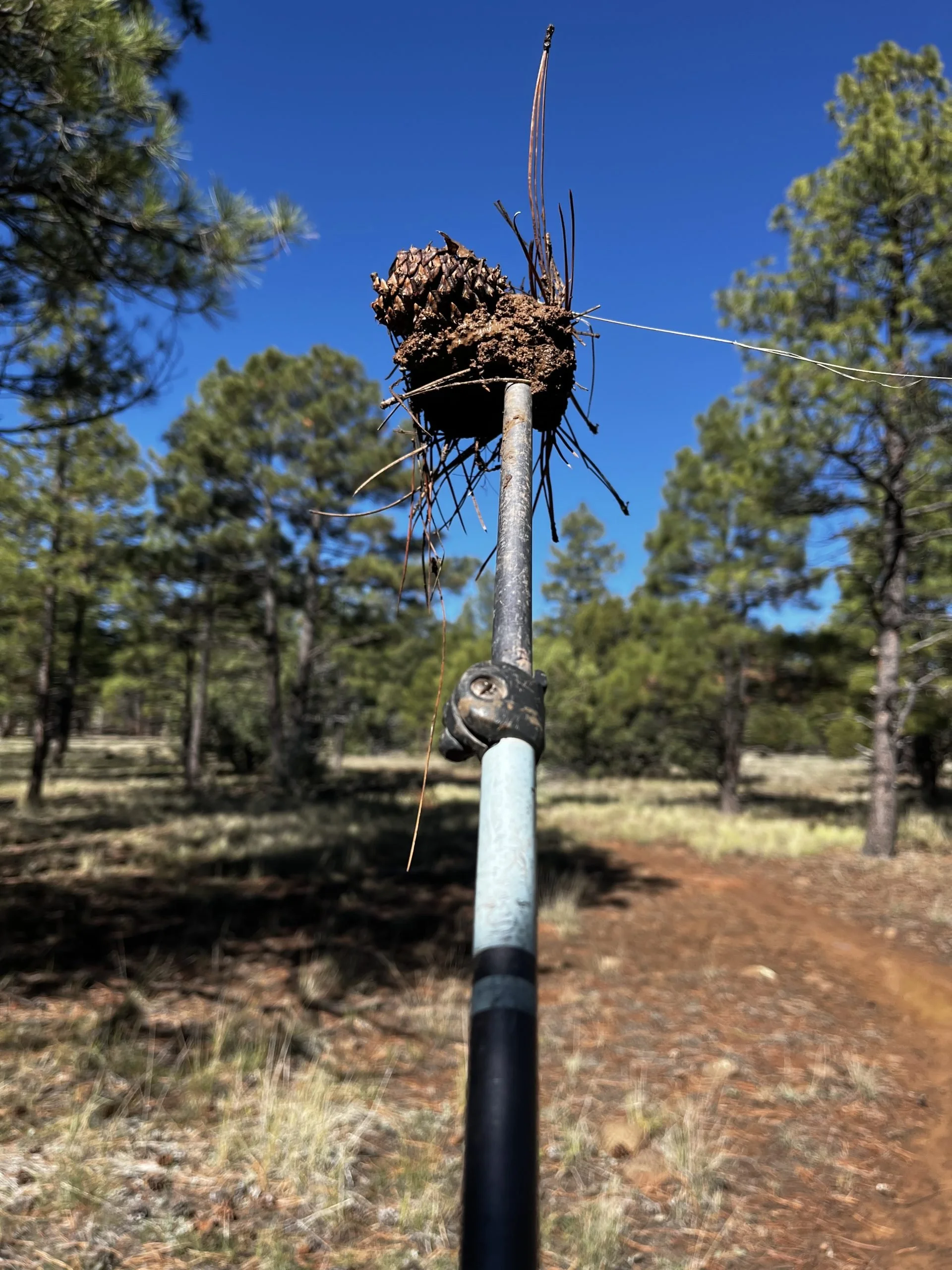 We start south of Flagstaff on a windy Tuesday. Climb out of the canyon and enter the land that makes hikers question their life choices — the land of deep hoof potholes filled with brown water. Mud sticks to your shoes, and as you walk, you collect half the forest with you — pine needles, grass, leaves. Then you discard them like some old hiker “horseshoes.” Weirdo mushrooms grow out of cattle poop.