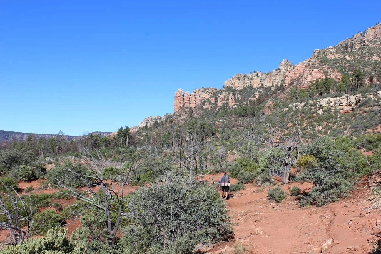 I was ready to deem this Flagstaff–Pine section one of the most miserable sections in my modest thru-hiking career, but that view — and everything after — redeemed it. Soon, we were walking the Mogollon Rim, and this was exactly how I imagined my “desert hike.” Agave growing in copper-colored soil. Rays of morning sun piercing through juniper and pine trees, lighting up the grasses, highlighting the bright brown stems of manzanita shrubs.