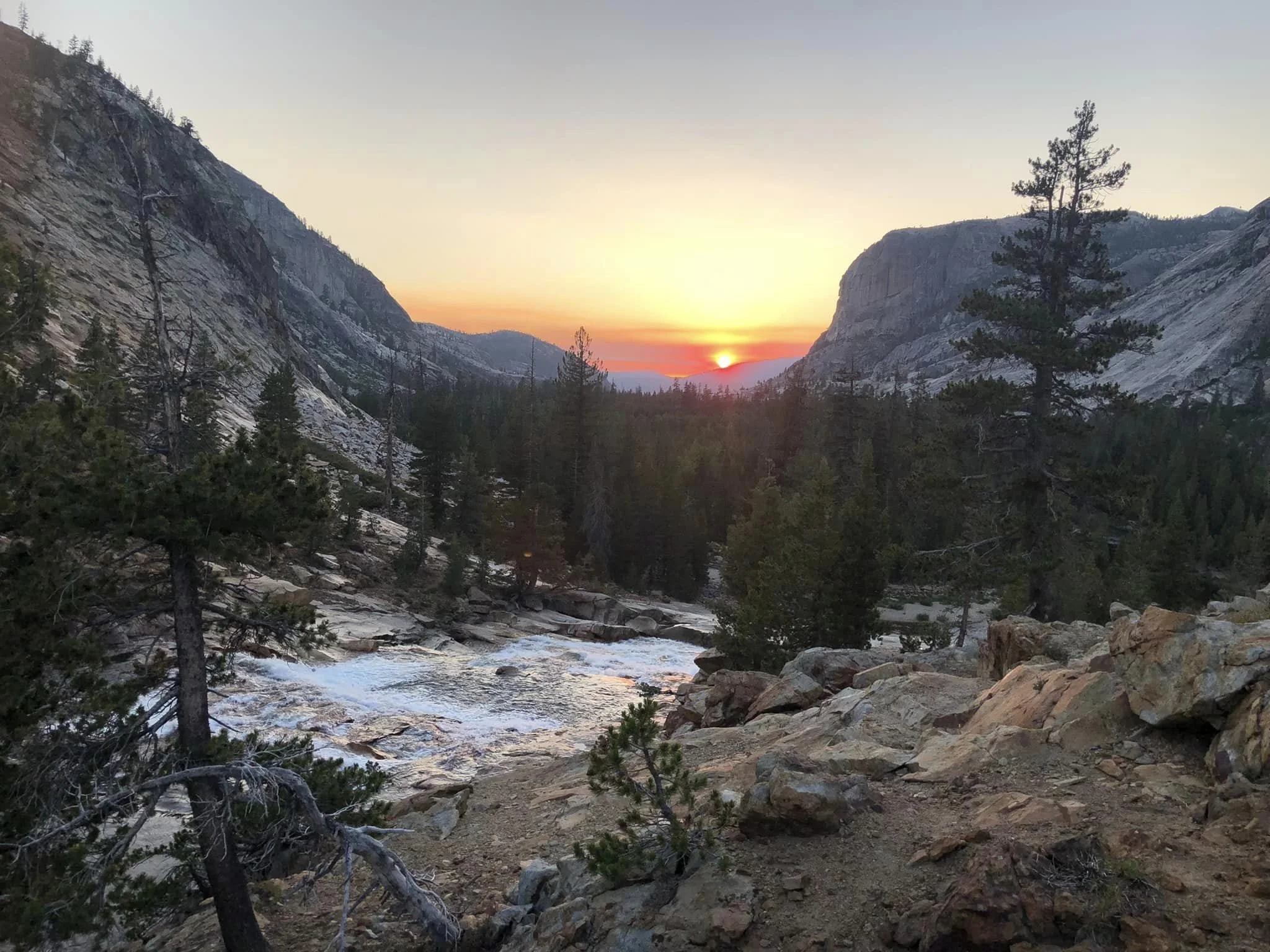 We rolled over the Donohue Pass and into thick smoke, which added a cinematic effect to the forest, turned sun orange, and all of a sudden we had magic hour at 4 PM. I smelled that familiar scent again, and for a second there it transported me back home, to the beginning of fall, but now it also gained another memory, a slightly sadder one. Now I know that sequoias smell like years of wildfires that have burned around them. And even though atmo smoke looked nice in pictures, it came from thousands of acres of a beautiful park burning. It lingered with us on and off for a couple of days.
