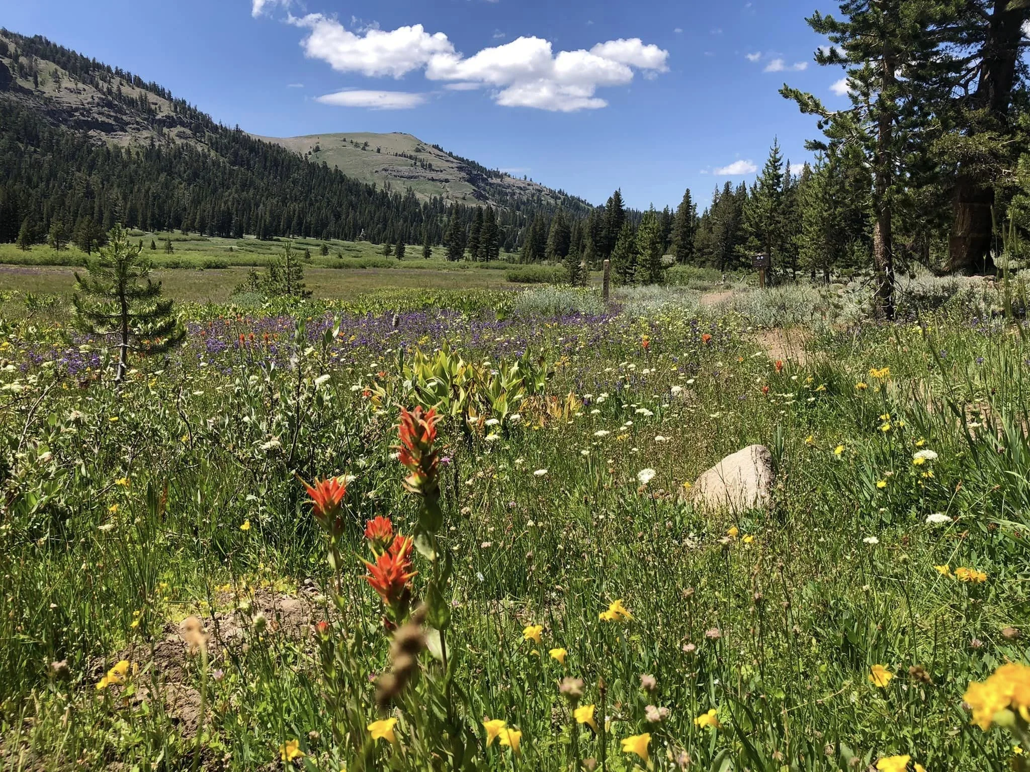 “Are you going Northbound?” Asked the man who ran the shuttle at Kennedy Meadows North. “You’re in for a treat, the meadows are in full bloom,” and oh boy (“oh boy” is the best hot chocolate in Sweden, btw) he was right. Giant red paintbrush, Mariposa lily, Sulfur buckwheat, Prettyface, Blue flax, Lupine, all meadows were covered in colors, and smelled of flowers, and sounded of bees and streams. In the morning, mist would rise above rivers and lakes, and deer would graze steps away from you, not bothered by your presence at all. Marmots watched the deer from the rocks and chipmunks ran circles around us and tents hoping for some food. At night, the stars were so close and the milkyway so bright, if you lay on your back and had no trees in sight, it felt like you were in space.