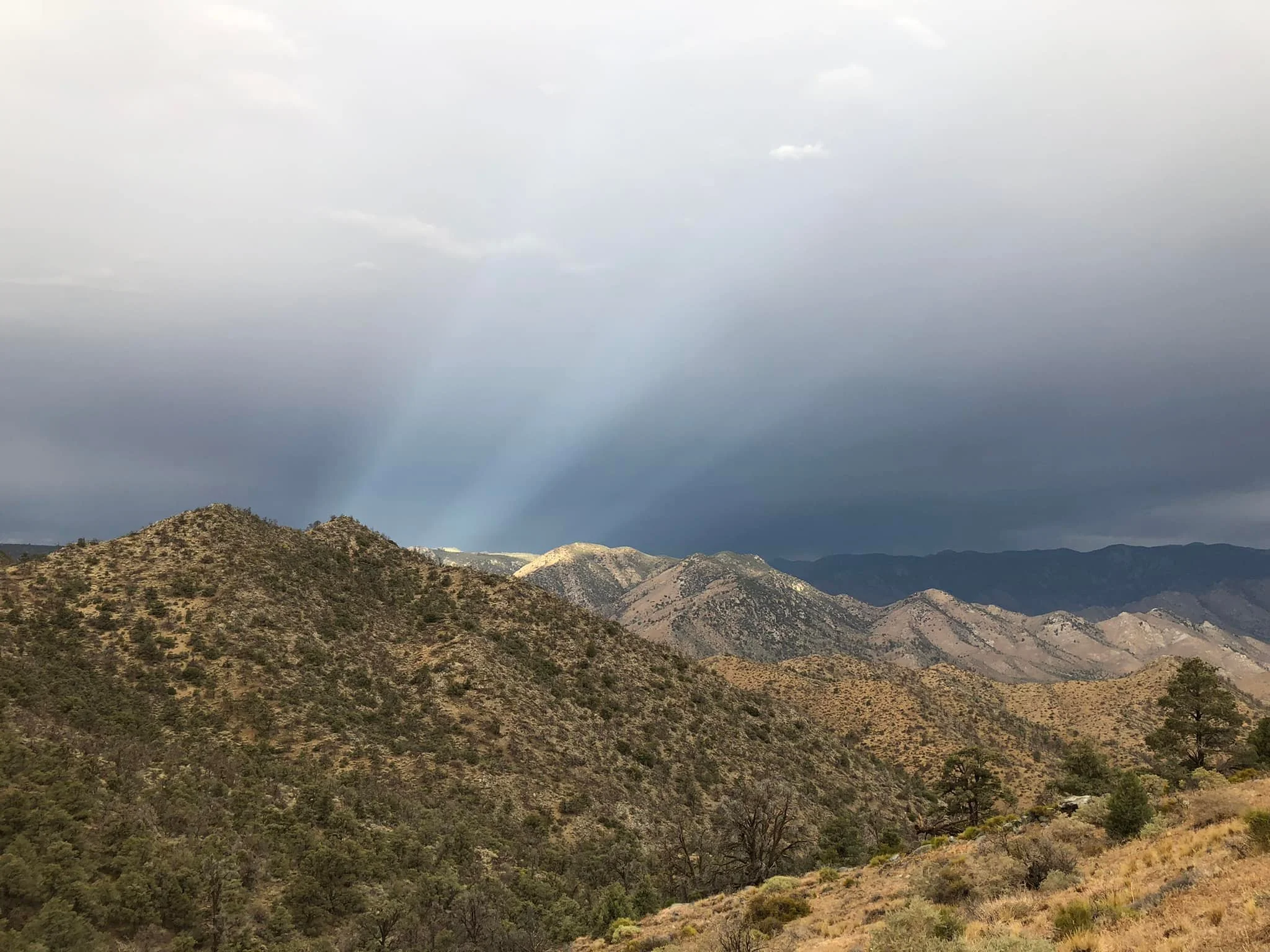 Remember I said I would sizzle for one more week in the frying pan? Cause it’s the desert, it’s hot, right? Wrong. The first night woke up to thunderstorms. Thunderstorm ended, so we thought we’ll get over another mountain ridge before another one comes. Wrong again. Got caught in a big storm on top of a mountain, spent some time crouching in a bush while lightning struck above me and in front of me, and the ground trembled from thunder. Soaked to my underwear. Why were you in shorts Eva, and where are your rain pants? Well, i decided to mail them 100 miles forward…cause it’s the desert, it’s hot, why would I carry those 100 grams? Glad I at least kept my rain jacket “just in case”. And so, after the thunder was more or less over, 10 more miles in the rain, I decide to snack, I lean forward and don’t notice a pine branch, that gets me right in the head. Another great addition to the day- a nice scar on the forehead that makes me look even more homeless. At least it’s not bleeding, I’ll be fine. I carry on. But the great day isn’t over yet. Another 5 miles or so in, we meet hikers going down, because the lightning started a wildfire right off the trail some 10 miles ahead.