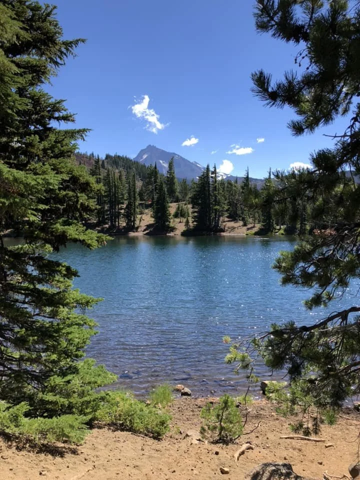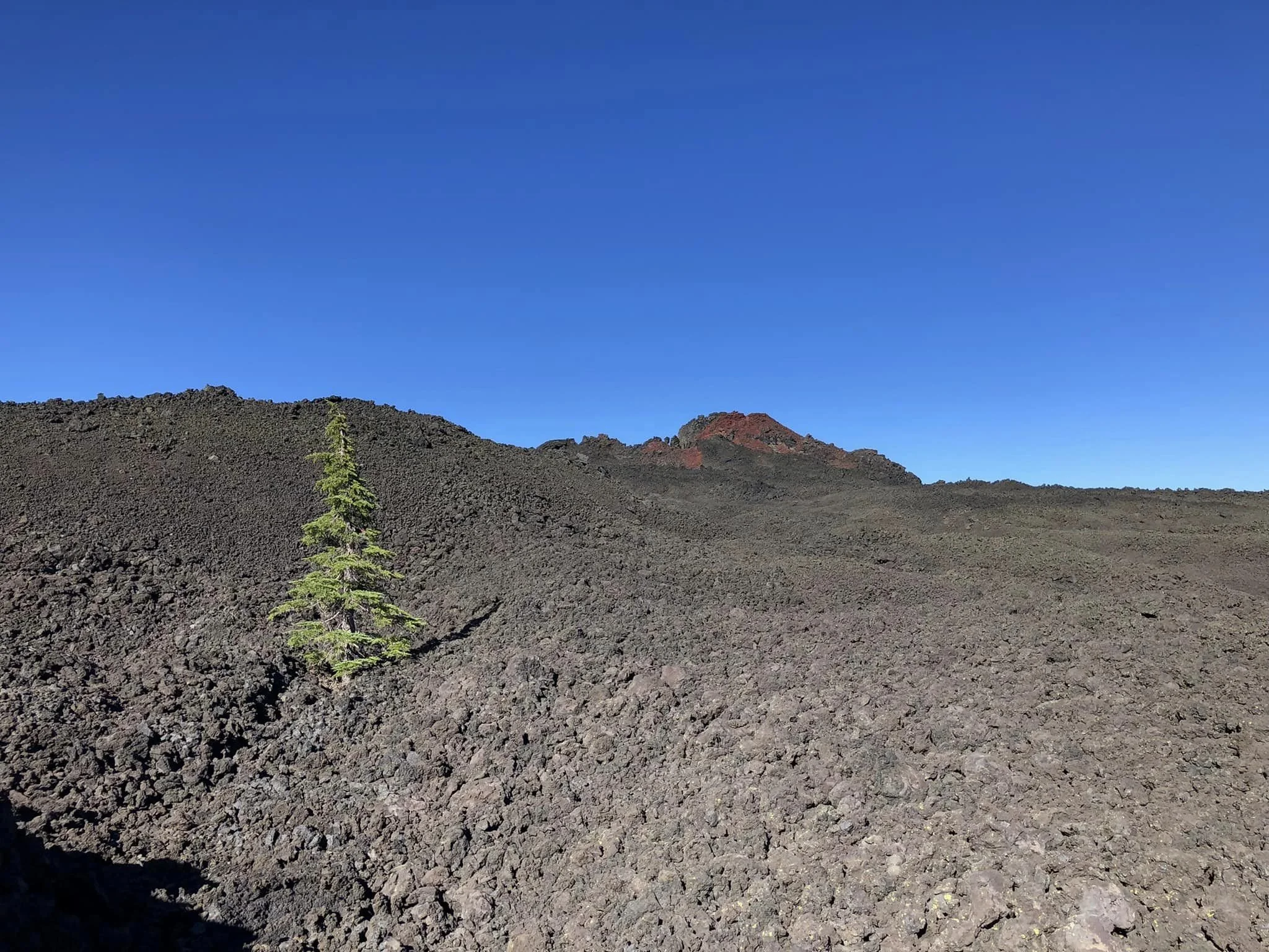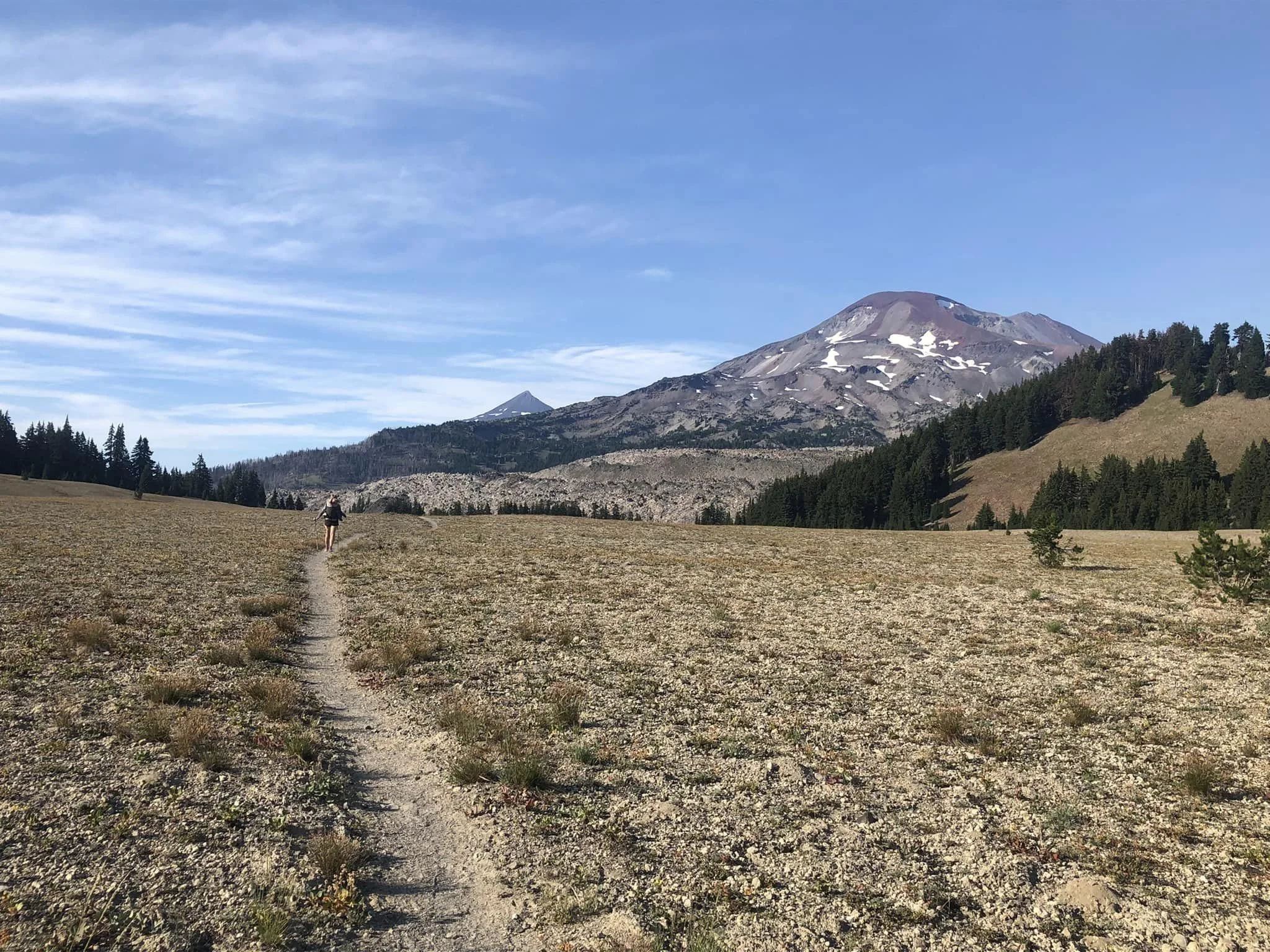 Another myth. The trail is pretty flat (which is cool), but left and right there are ginormous stand-alone volcanoes patched with snow. It’s been a pleasant mix of volcanoes and forests, no wildfire smoke and a good weather.