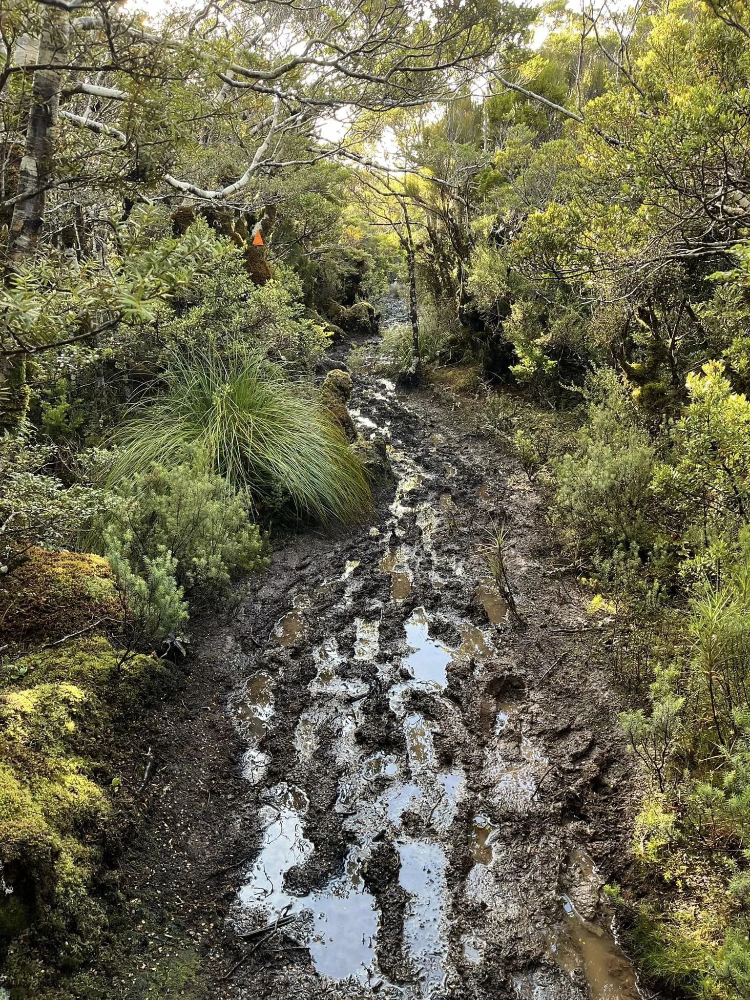 At the beginning of this trail you try to avoid mud. You try to keep your feet dry and your shoes relatively clean. Soon, you learn that it’s all a waste of time. Forget your shoes. Forget clean. In fact, forget you have feet at all, because most likely they are frozen from being in cold mud water anyway. Those seconds are spent wiser looking at the views than the state of destruction below your kneecaps.