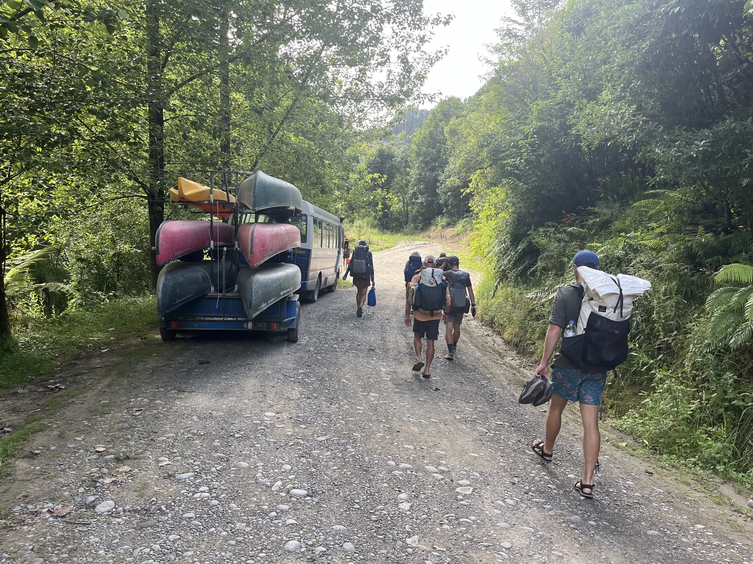 The next day we planned to reach a campsite called Hipango Park, which wasn’t marked on Farout app, but was approximately at kilometer 1347 on that big loop the river does before reaching Whanganui town. The sign was broken, but you couldn’t miss it – it has a wooden jetty on the right bank. We pulled the boat onto the jetty in case water level rises with the tide (since here the river is affected by tides, being close to the ocean) and yet again hauled our barrels uphill. Tonight, was going to be a feast, and even after that, there would be enough food to get me through the next section. I’ve travelled almost an entire Island and still haven’t figured out how much food to buy on my resupplies. TA kept surprising me with being either harder or easier than anticipated. 20 km one day could be an easy stroll while the next day, same distance could exhaust you beyond comprehension. A trail like that is not easy to plan. At Hipango, we caught the group that had departed a day ahead of us, and some of our own group has caught up with us, with stories of their unfortunate overturn, in which they lost most of their possessions.